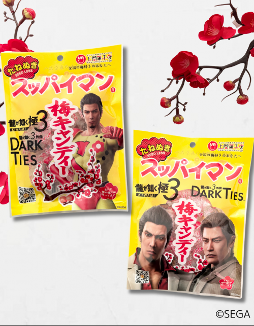 ゲーム内での登場に合わせ、「スッパイマンたねぬき梅キャンディー」と『龍が如く』がコラボレーションした限定パッケージを数量限定で発売します。